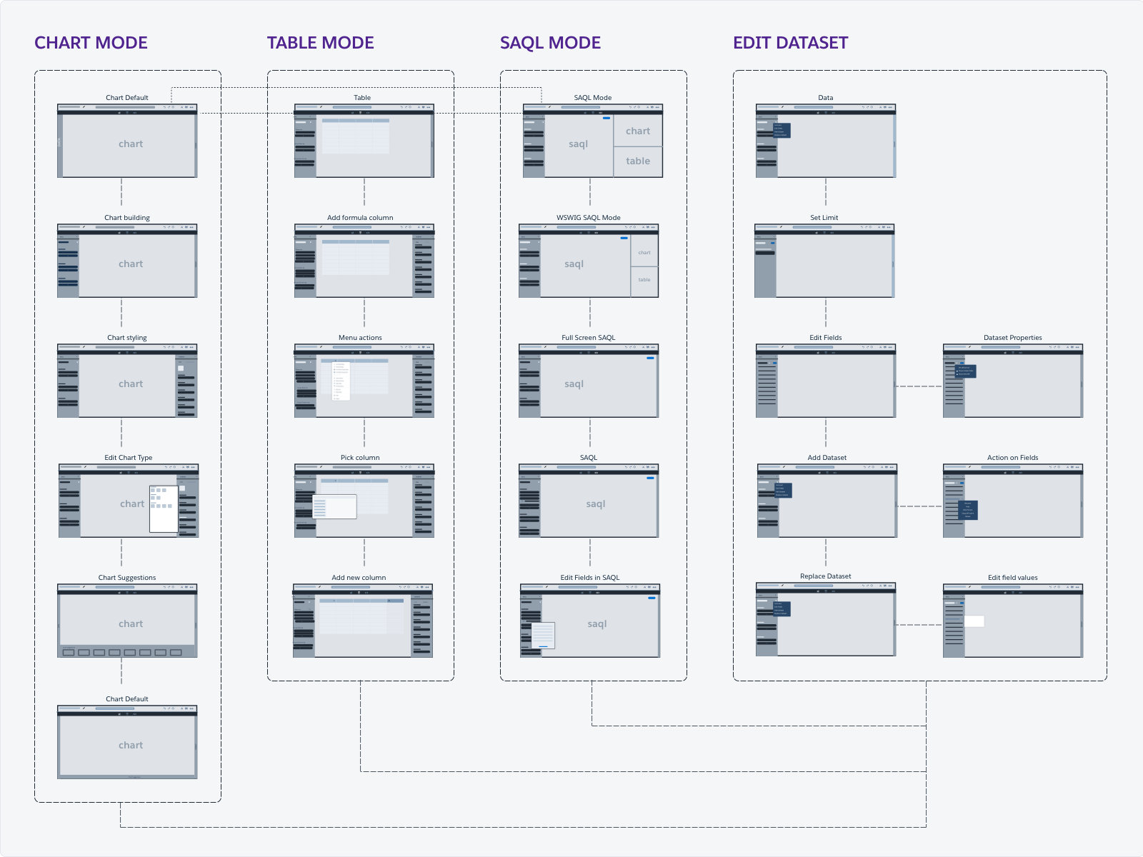 To have a deep understanding of the current platform and to familiarize myself with the workflows, I started using the tool to build vizualizations. I also worked with the product manager and developers to come up with an information architecture of the existing tool. By identifying the current IA and user research, we were able to identify pain points and functionalities/features that our platform lacks.