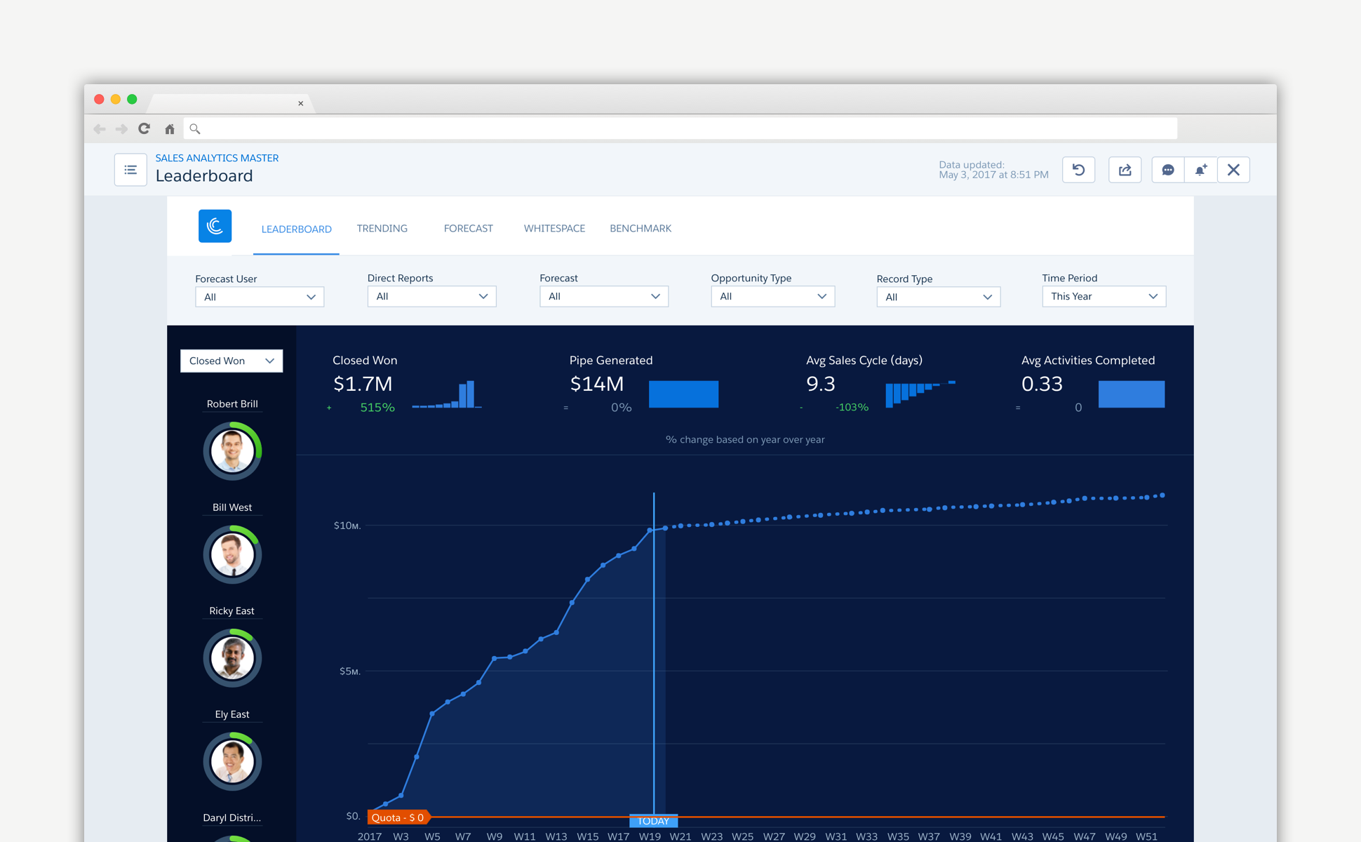Sales Analytics App helps Sales Leaders and Reps get insights on their salesforce data and take relevant business actions. This app is built on the Salesforce Einstein Analytics platform. Some basics about the app: