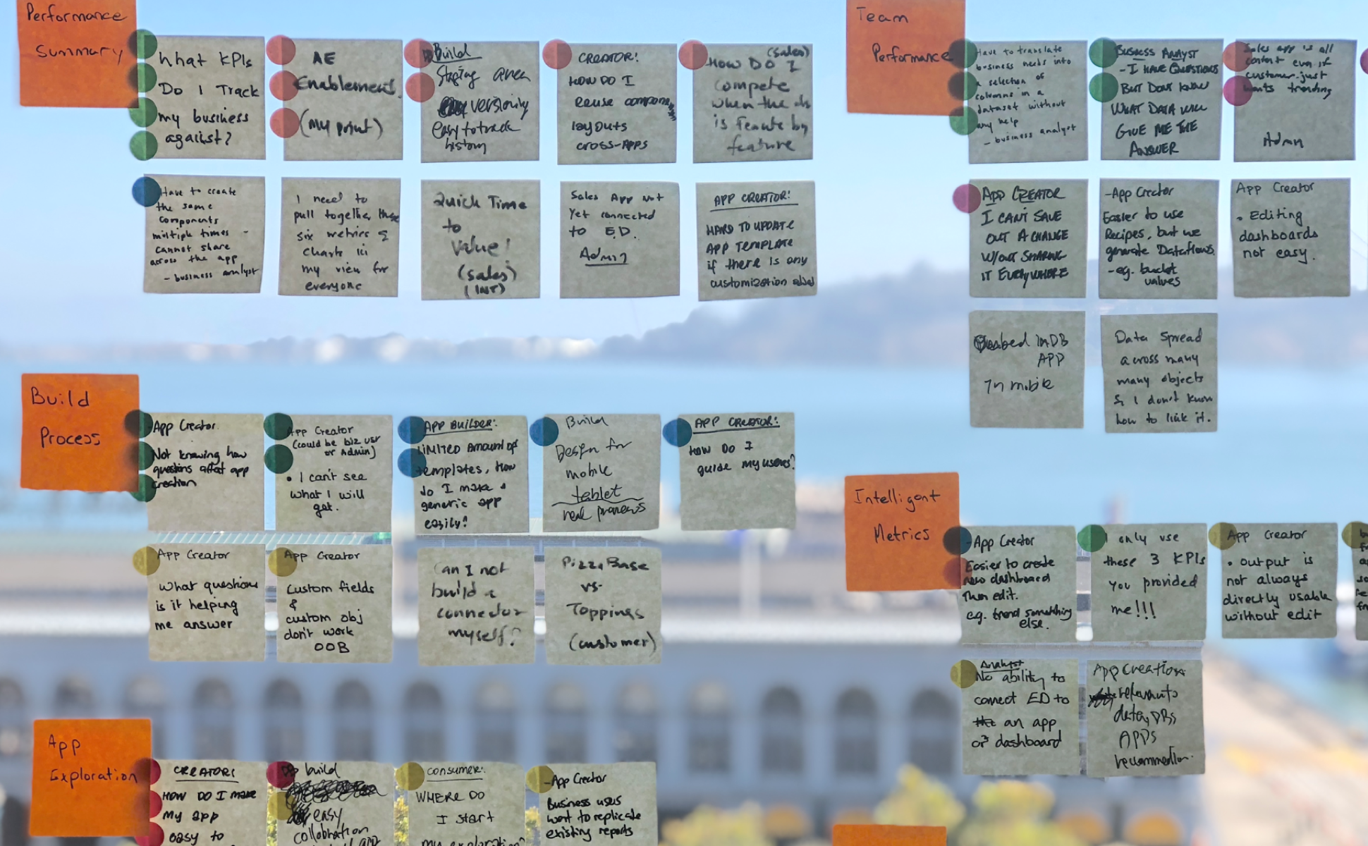After the first two steps, we were left with a set of loosely organized ideas. We structured our app based on personas such as sales leaders, managers, and reps. Each persona had a set of pages or dashboards that are structured based on tasks that they perform.