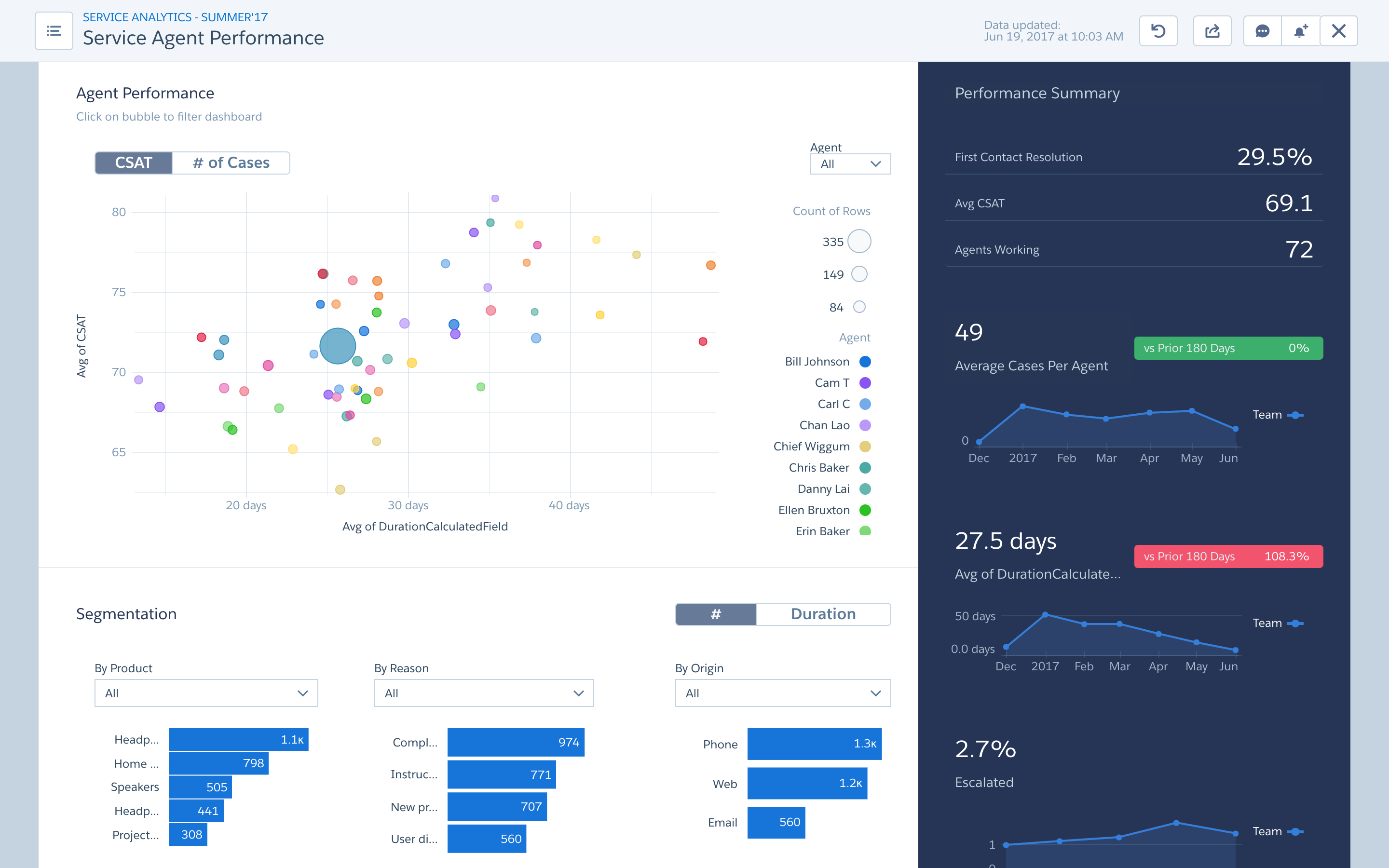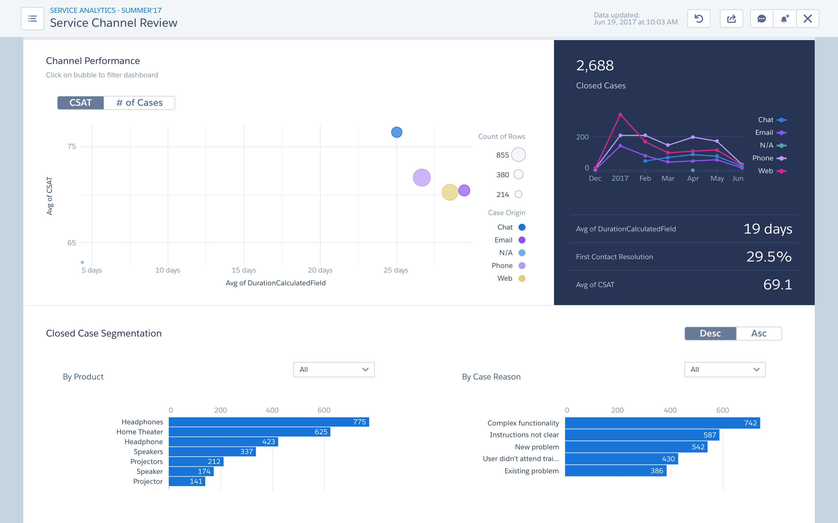 Service Analytics helps Service Managers and Reps get insights on their salesforce data and take relevant business actions. This app is built on the Salesforce Einstein Analytics platform. Some basics about the app:
