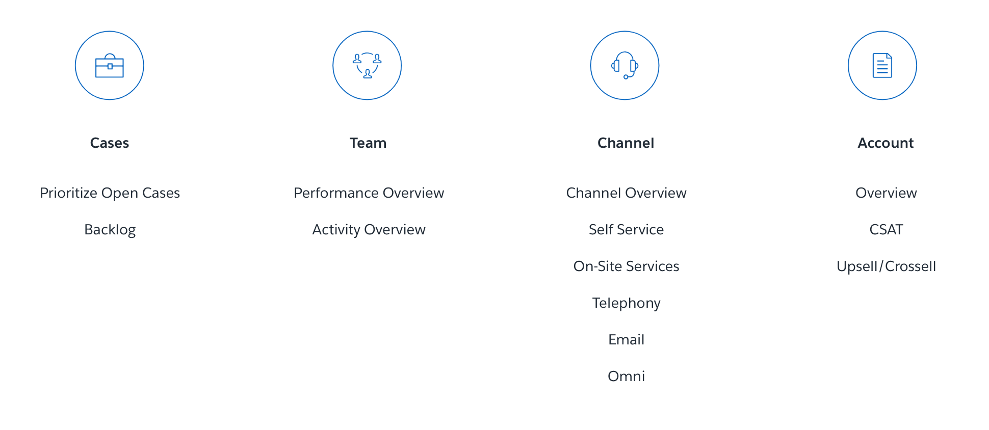 The first step was understanding the end user. We did that by mapping the user’s path of inquiry, i.e. identifying user's goal and outlining user’s needs to achieve their goal. Some of the high level goals for the manager were to track case backlogs, review teams, and measure customer satisfaction. Then we listed out all the questions that user might ask to answer these goals, for example “How many cases are in backlog that are high priority?” or “Which rep is taking the longest to close a case?”. Lastly we identified the metric that answered the questions and prioritized them